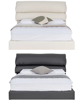 · 헤드보드 디테일 ① 10mm 폼을 덧대어 부드럽고 푹신 ② 풍성한 볼륨감 & 약 15˚ 각도가 주는 편안한 느낌