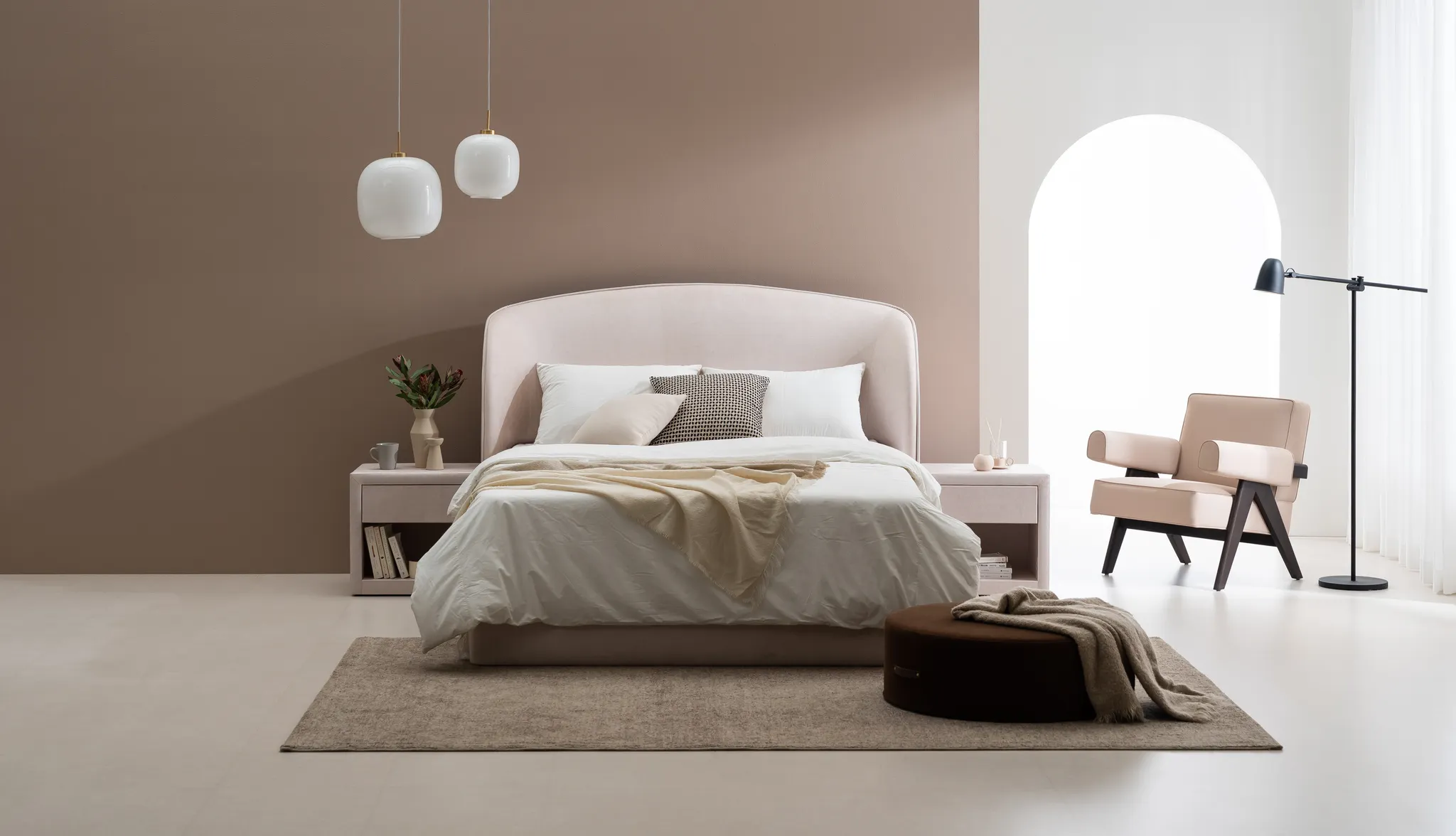 <아늑하고 멋스러운 공간을 연출해주는 커브형 패브릭 프레임> 유려한 곡선을 살린 고급스러운 디자인