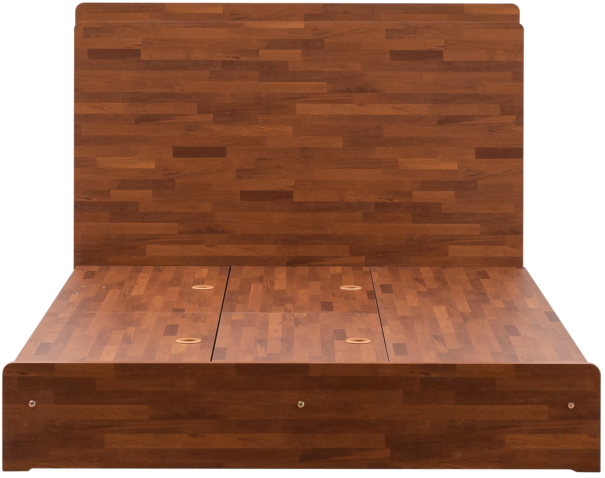 · 소재 : MDF, DECO SHEET(멀바우색상 데코시트 가로결 무늬) · 색상 : 멀바우 · 사이즈 : S/SS, D, Q/K, LK1700/1800 · 헤드보드 디테일: ①LED 조명(3단계 밝기 조절) ②헤드상단 on/off 스위치, USB포트 1구 · 깔판 디테일 : ①안정적인 평상형 구조 ②밀림방지 가드 · 사이즈별 디테일 : ① S/SS : 벙커수납 2개+서랍 3개 ② D, Q/K, LK : 벙커수납 4개(라지2+스몰2)+서랍 3개