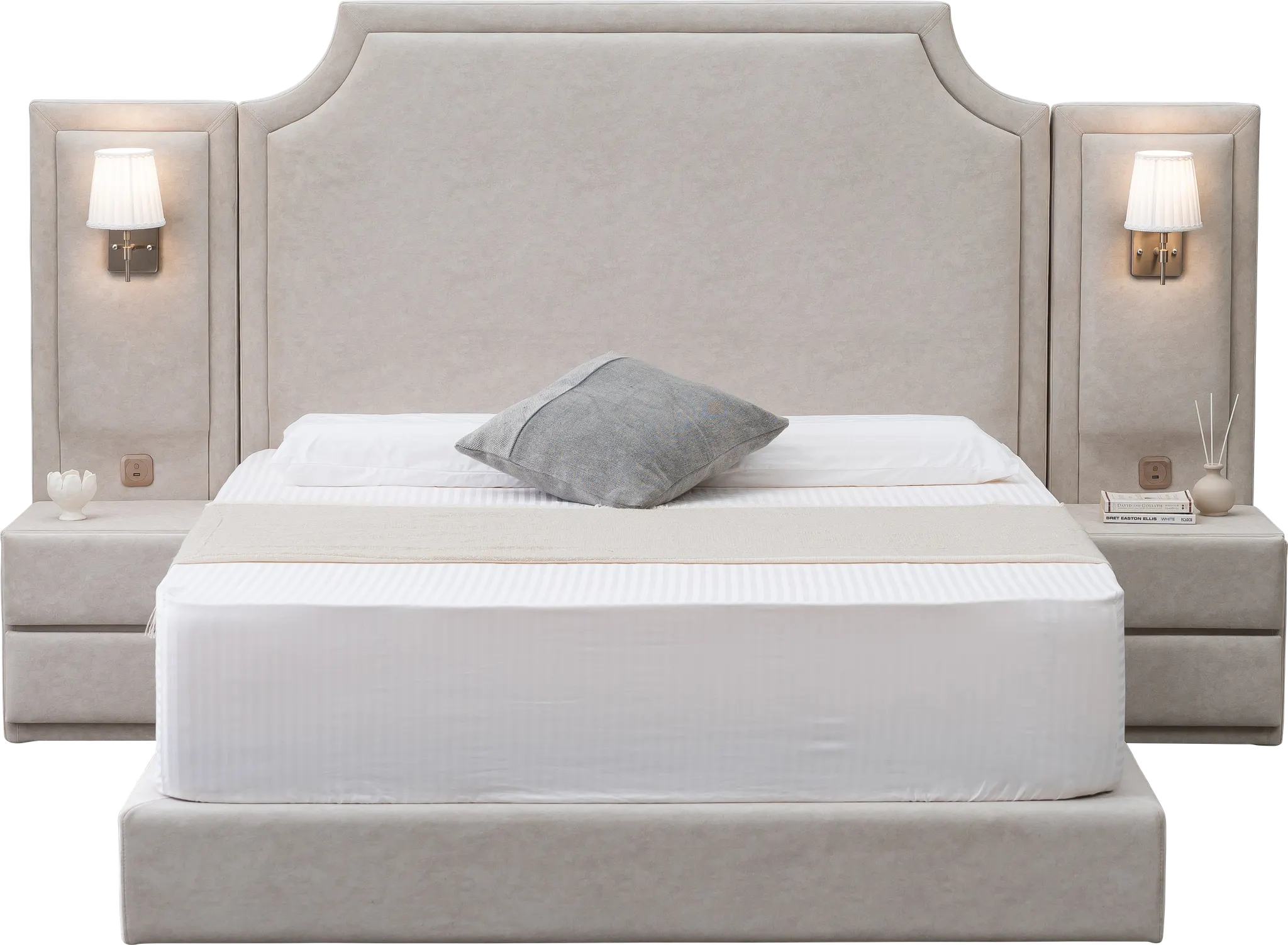 <디럭스한 디자인의 높고 웅장한 헤드보드, 포근하로 세련된 프리미엄 패브릭 프레임> 고급스러운 호텔 베드 스타일의 하이&와이드 프레임